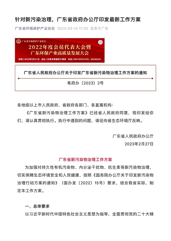 针对新污染治理,广东省政府办公厅印发最新工作方案