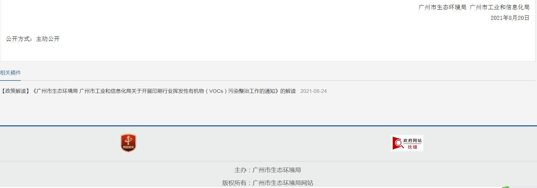 广州市生态环境局 广州市工业和信息化局关于开展印刷行业挥发性有机物(VOCs)整治工作的通知