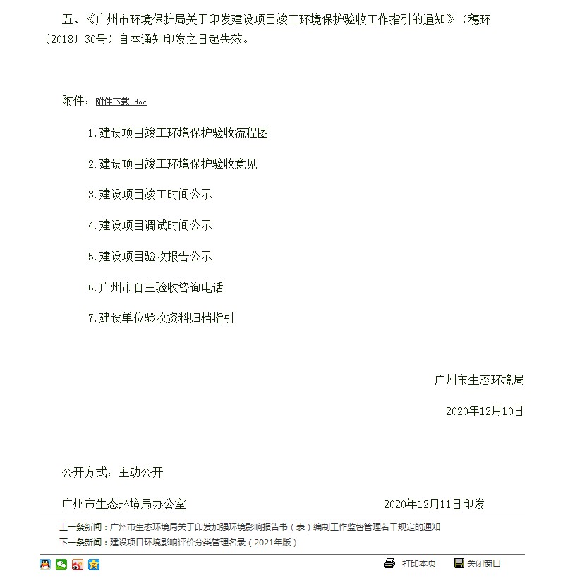 广州市生态环境局关于规范建设单位自主开展建设项目竣工环境保护验收的通知