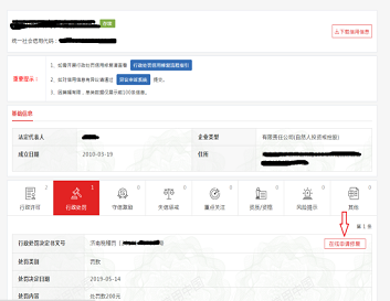 5、在行政处罚页面点击“在线申请修复”。