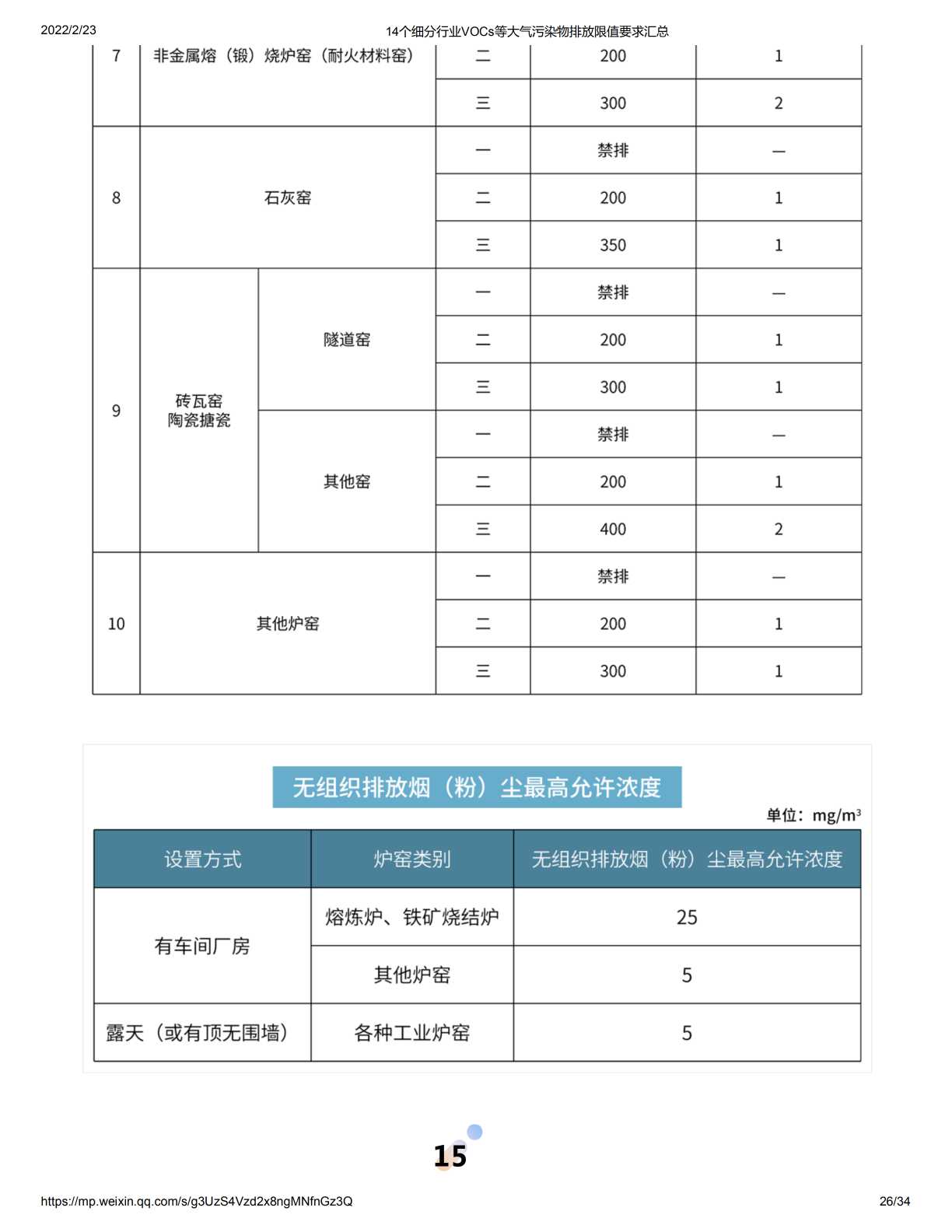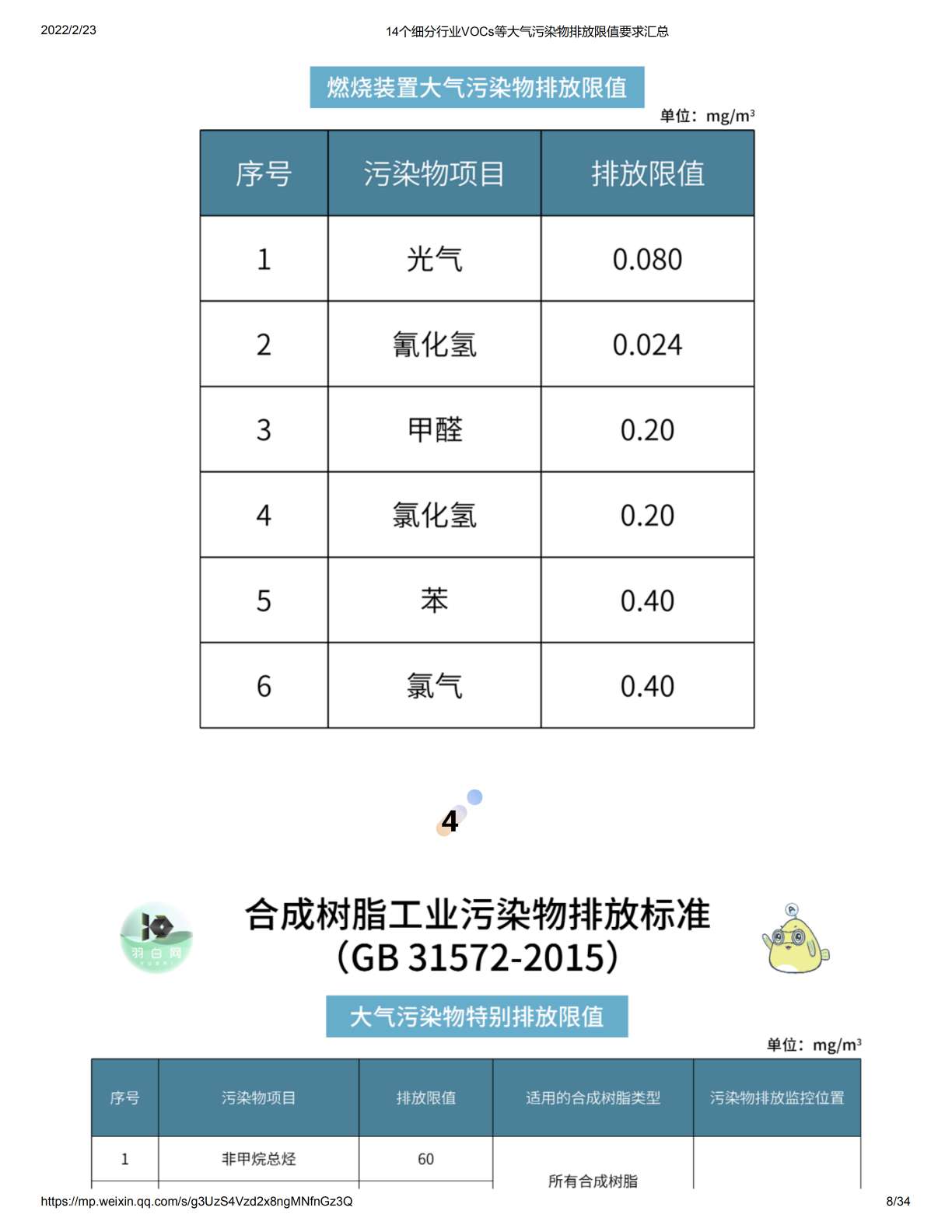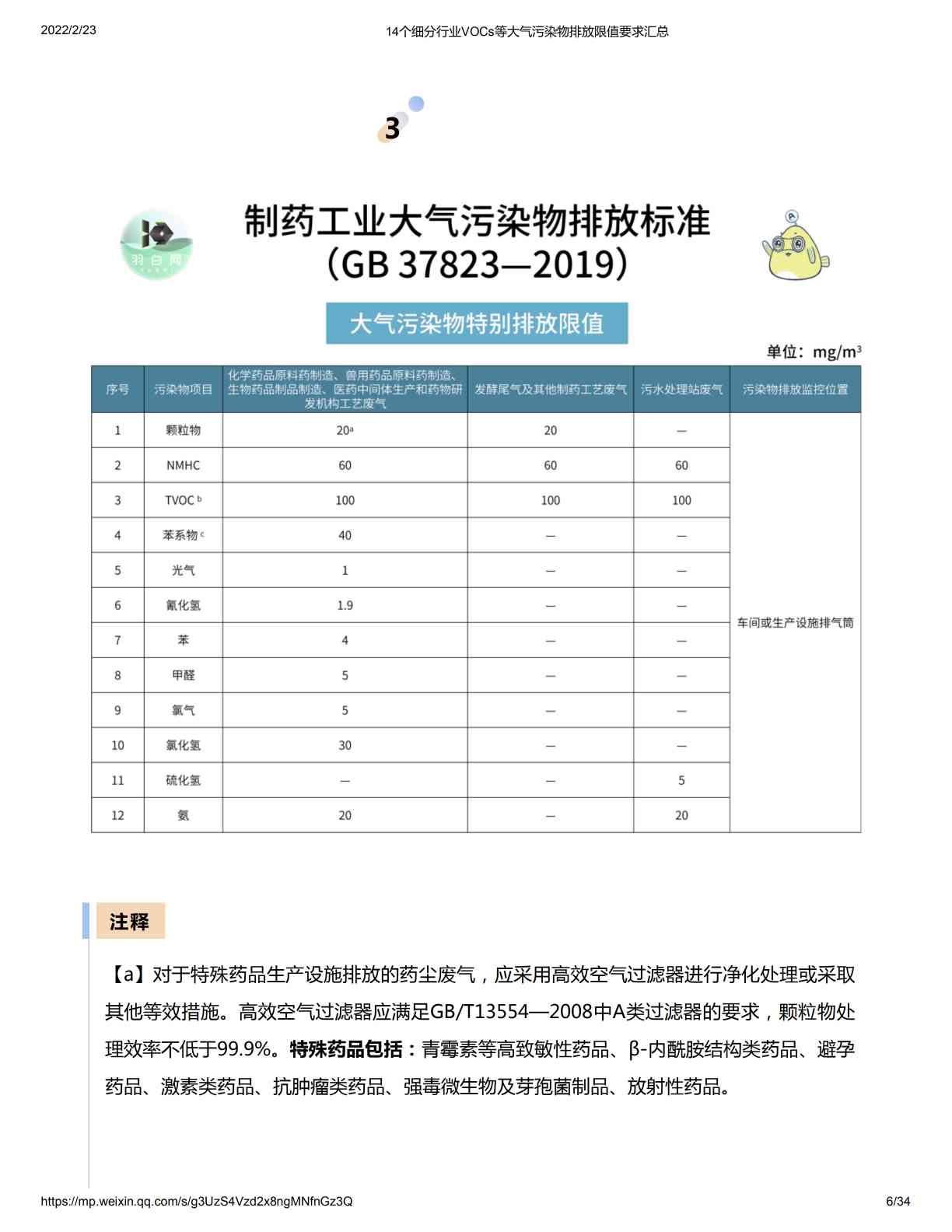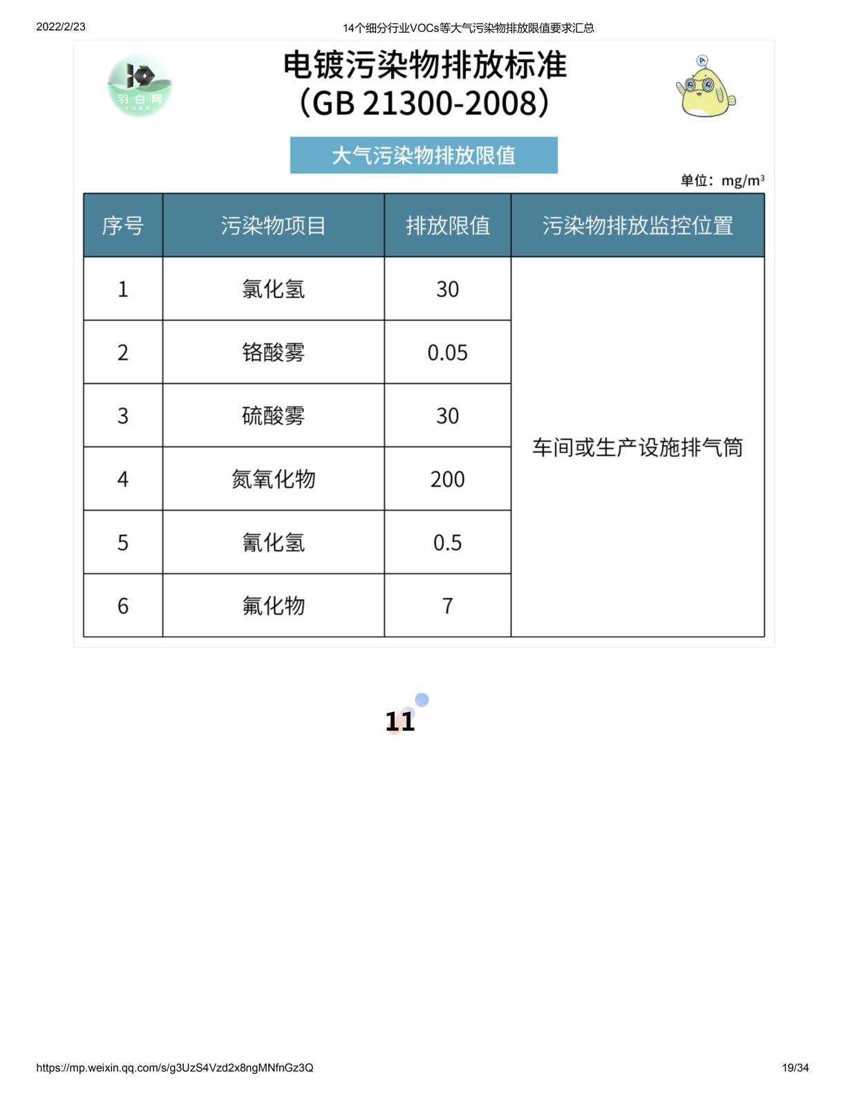 14个细分行业VOCs等大气污染物排放限值要求汇总