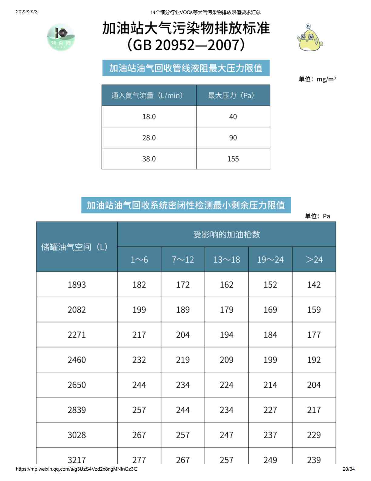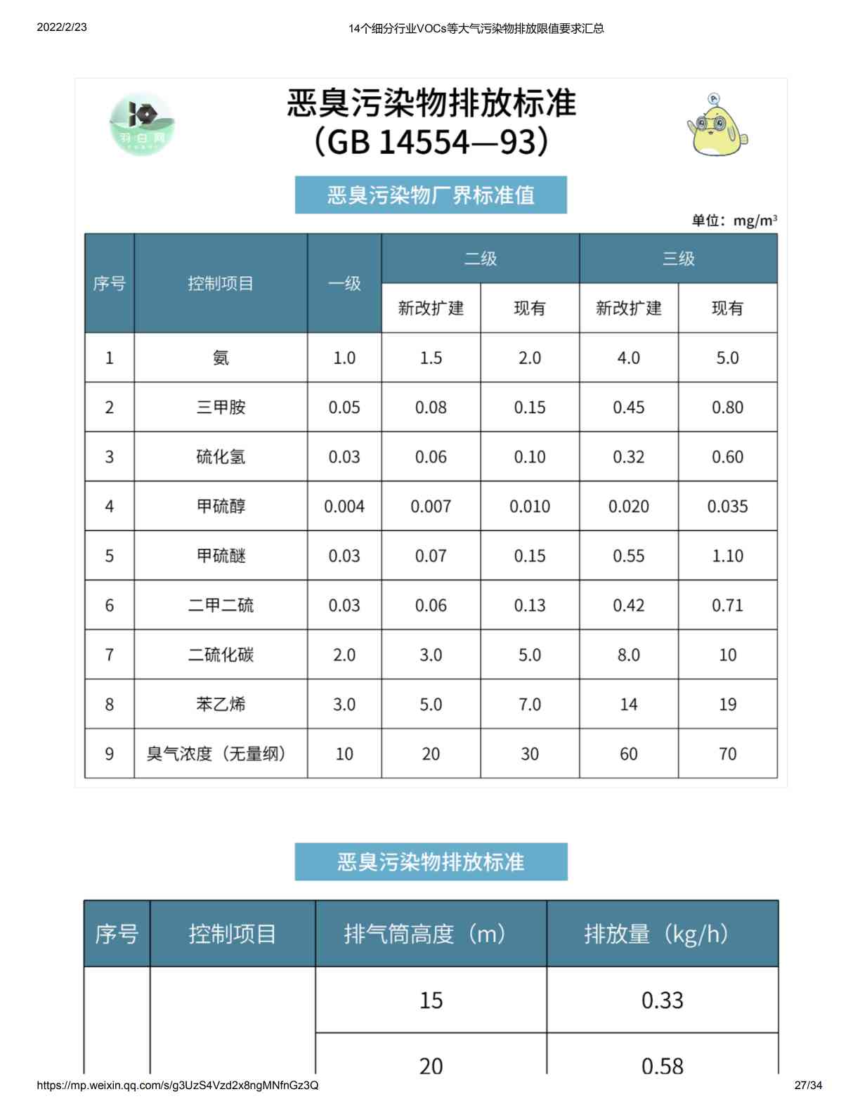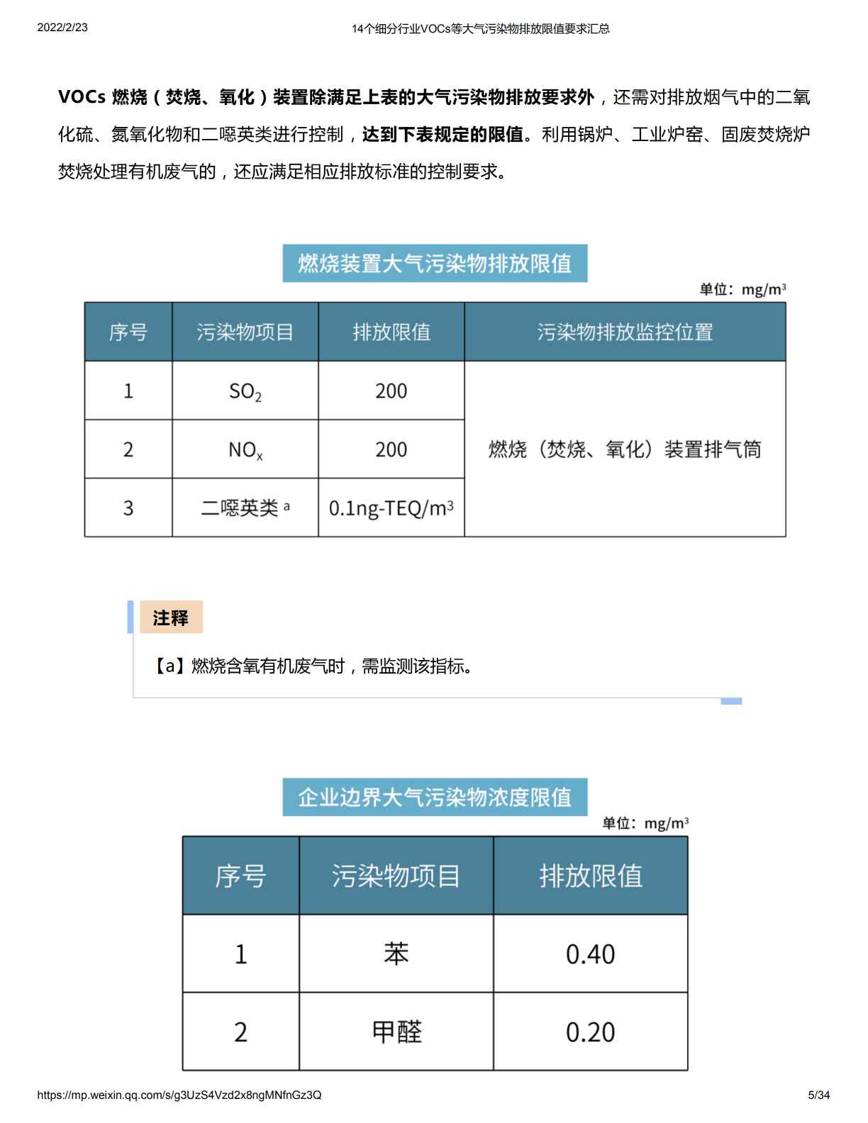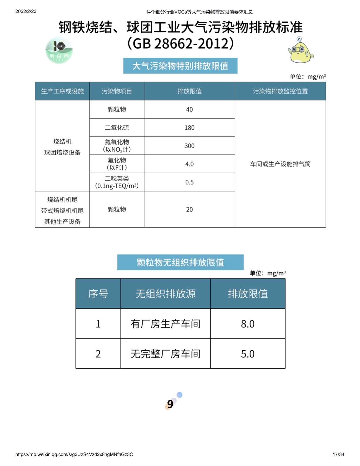 14个细分行业VOCs等大气污染物排放限值要求汇总