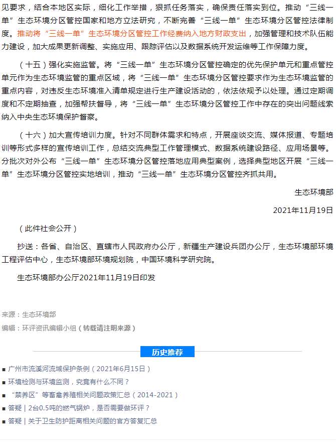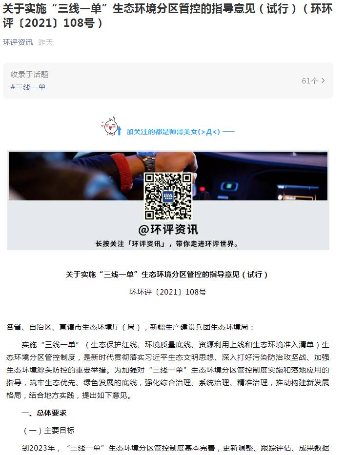 关于实施“三线一单”生态环境分区管控的指导意见(试行)(环环评〔2021〕108号)
