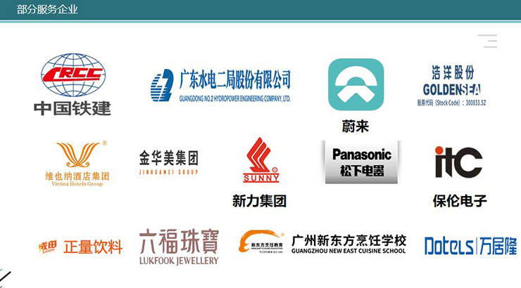 | 广州市安鑫汽车维修有限公司 | 神州租车上市公司属下企业 | 美卡莱生物科技 | 知名化妆品企业 | 广州市方驰电子有限公司 | 知名汽车锂电池监测企业 |